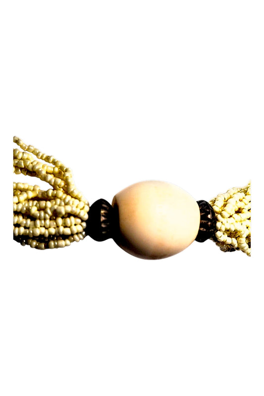 Collar Vintange cuentas maderas y cristal color beige