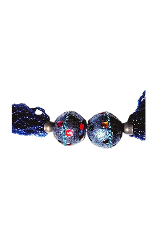 Collar Fantasía bolas y cuentas de cristal color azul marino