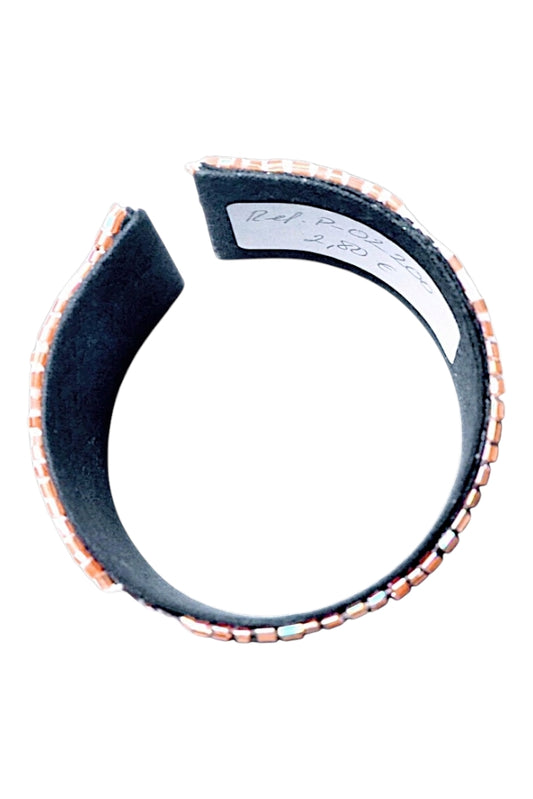 Elegante pulsera en dos tonos de marrón con fleco de detalle metálico.
